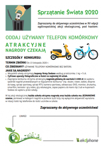 W nawiązaniu do międzynarodowej akcji Sprzątanie Świata 2020, zapraszamy do aktywnego uczestnictwa w XV edycji ogólnopolskiego konkursu, pod hasłem: