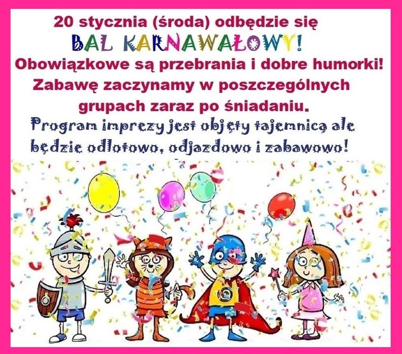 Już niedługo ważne wydarzenie w „Konwaliowym Zakątku” - bal karnawałowy 🎉🎈🎉🎈🎉