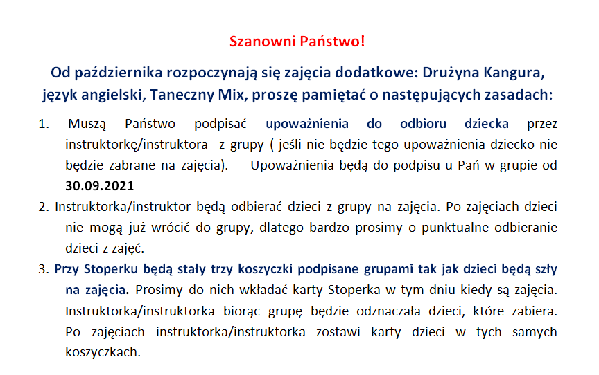 Zasady odbierania dzieci po zajęciach Studia Tańca "Twist" i "Drużyny Kangura"