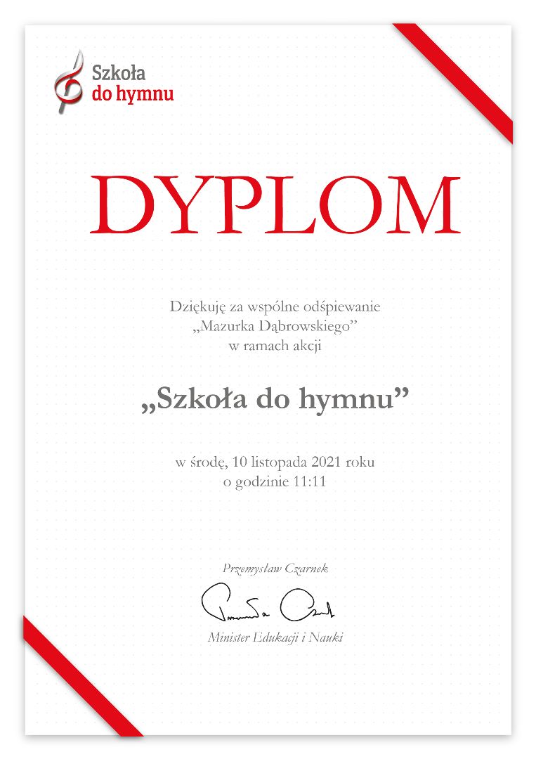 Dzieci i nauczycielki z naszej placówki wspólnie odśpiewały we wtorek 10 listopada o godz.11.11 „Mazurka Dąbrowskiego” w ramach akcji „Szkoła do hymnu”.  Za co otrzymaliśmy podziękowania  od  Ministra Edukacji Narodowej pana Przemysława Czarnka. Cieszymy się, że razem z Państwa dziećmi mogliśmy wziąć udział w tej inicjatywie!