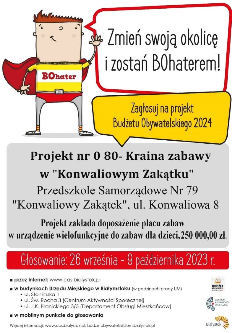 Drodzy Rodzice, z radością informujemy, że nasze Przedszkole Samorządowe nr 79 „Konwenowy Zakątek” zostało nominowane w plebiscycie Kurier Poranny na Najlepsze Przedszkole w Białymstoku! 🏆
