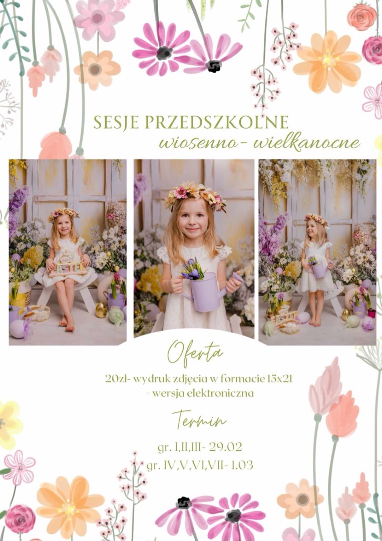 w środę 11 marca w naszym przedszkolu odbędzie się wielkanocna sesja fotograficzna.