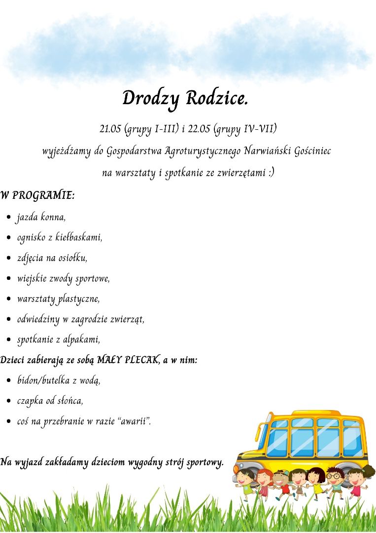 wyjazd z przedszkola autokarem o 11:30. Dzieci będą uczestniczyć