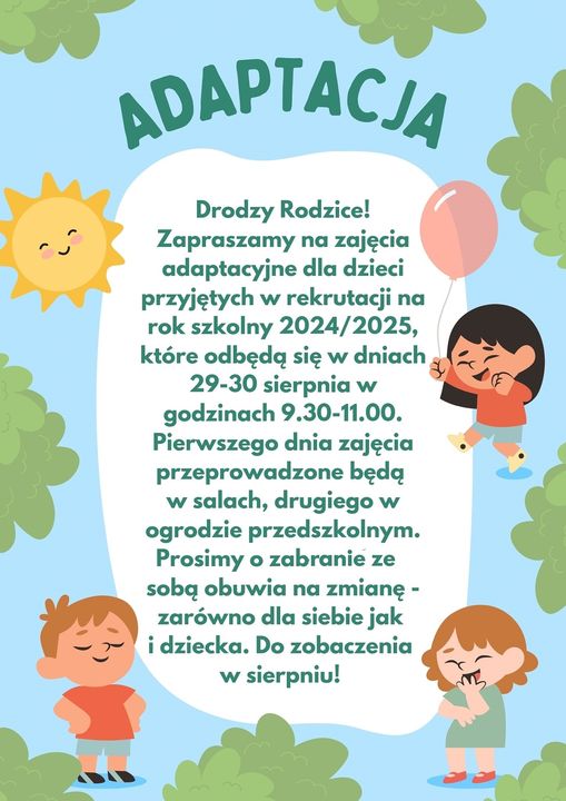ZAPRASZAMY NA ZAJĘCIA ADAPTACYJNE!