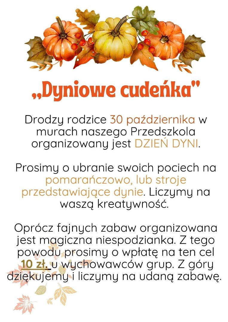 Drobne pieniądze prosimy przekazywać przez dziecko do nauczycielek ze swojej grupy.