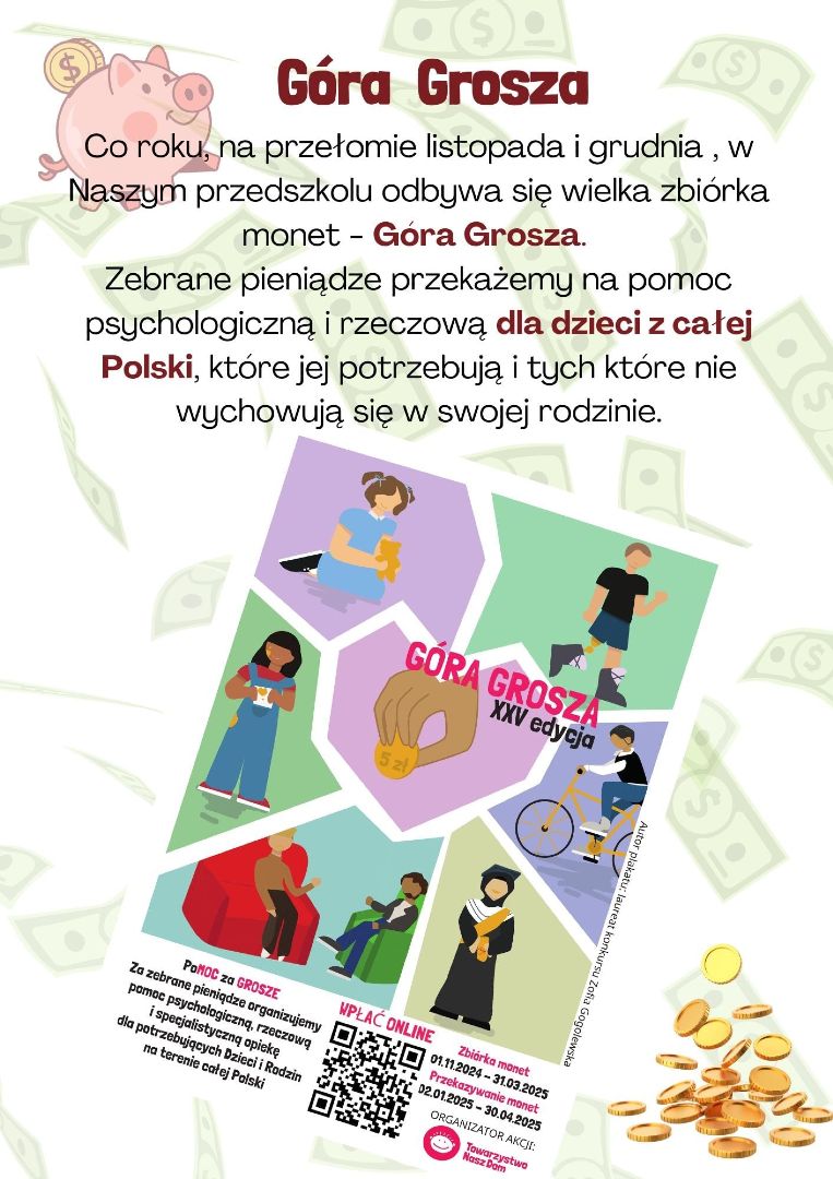 Nasze przedszkole kolejny już raz będzie uczestniczyło w akcji „Góra GROSZA”,