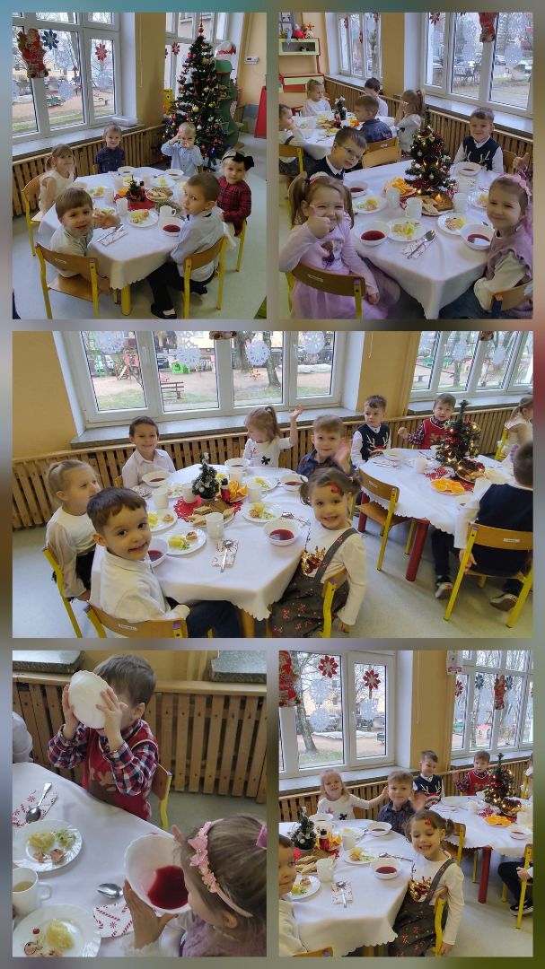 Jak co roku przedszkolaki z Konwaliowego Zakątka wzięły udział w tradycji jedzenia wspólnego obiadu wigilijnego, na którym nie zabrakło dzielenia się opłatkiem oraz składania sobie świątecznych życzeń. Dzieci z chęcią świętowały przy wspólnym stole i zajadały się pysznymi potrawami i słodkościami ❤️🎄😊