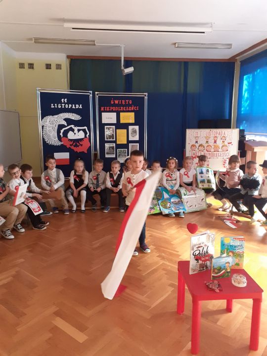 10 listopada przedszkolaki uczciły Święto Niepodległości. Zaprezentowały wiersze i piosenki o Polsce. Najstarsza grupa z tej okazji przygotowała przedstawienie. O godz. 11.11 wszystkie grupy zaśpiewały Hymn Polski w ramach projektu "Piękna Nasza Polska Cała".
