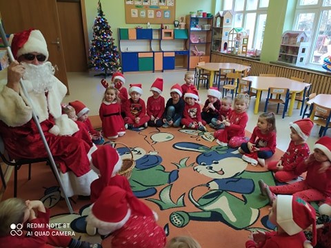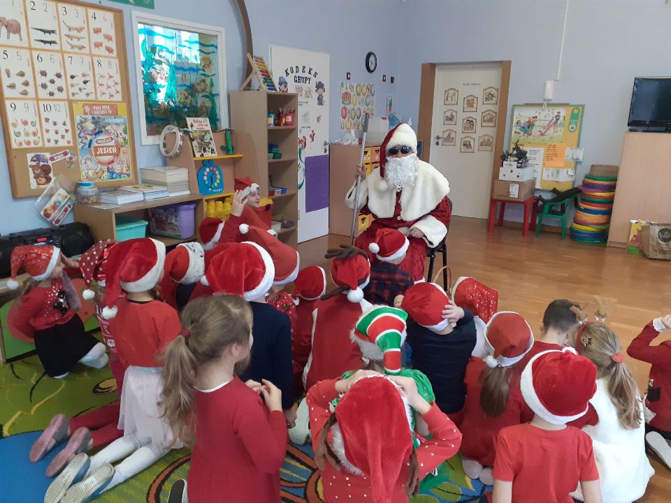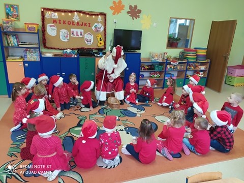 dzień w przedszkolu przebiegł w wyjątkowej atmosferze. Już od samego rana nasze przedszkolaki witał w drzwiach sam Święty Mikołaj z koszem pełnym cukierków. Potem odwiedzał przedszkolaki w ich grupach, a one ciesząc się z jego wizyty śpiewały mu piękne piosenki właśnie o nim. Mikołaj powiedział również dzieciom, że czeka na ich listy do niego z prośbami świątecznych prezentów. To był dzień był pełen niespodzianek, mikołajkowych zabaw, śpiewów i tańców. Magiczny, niezapomniany dzień!