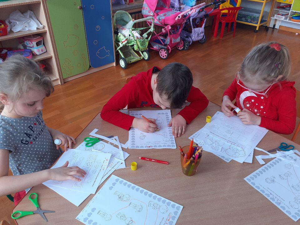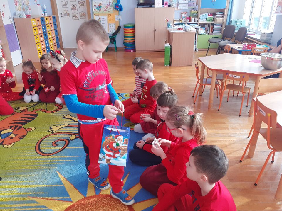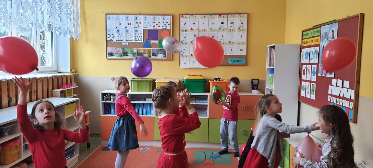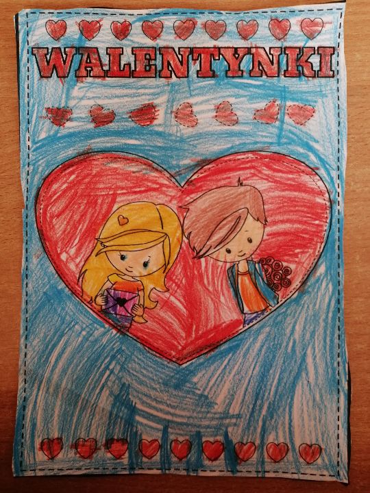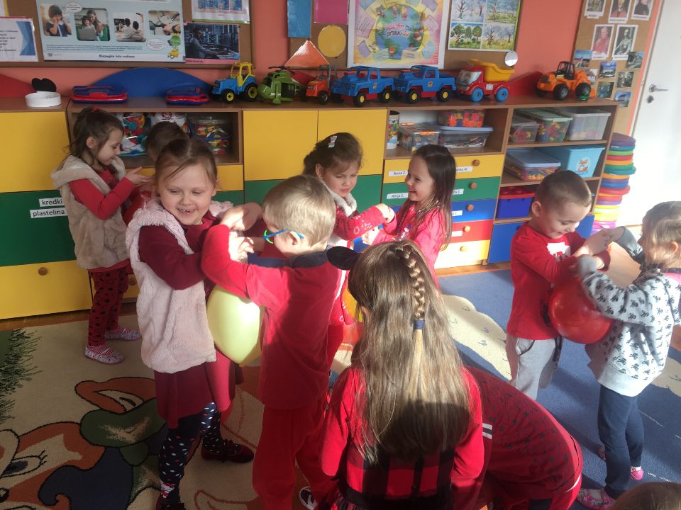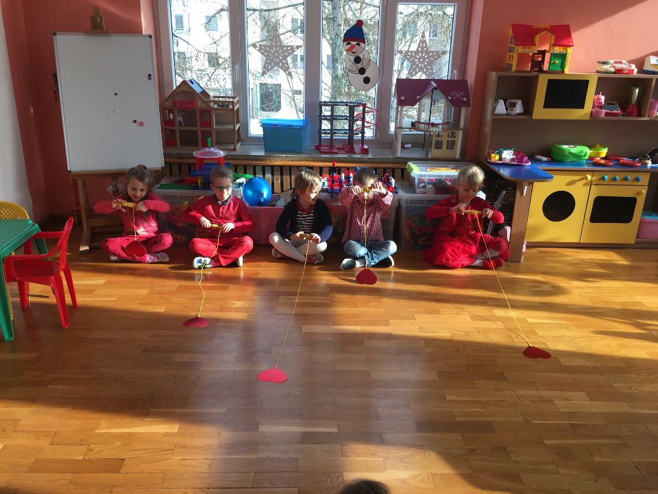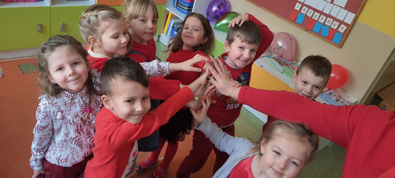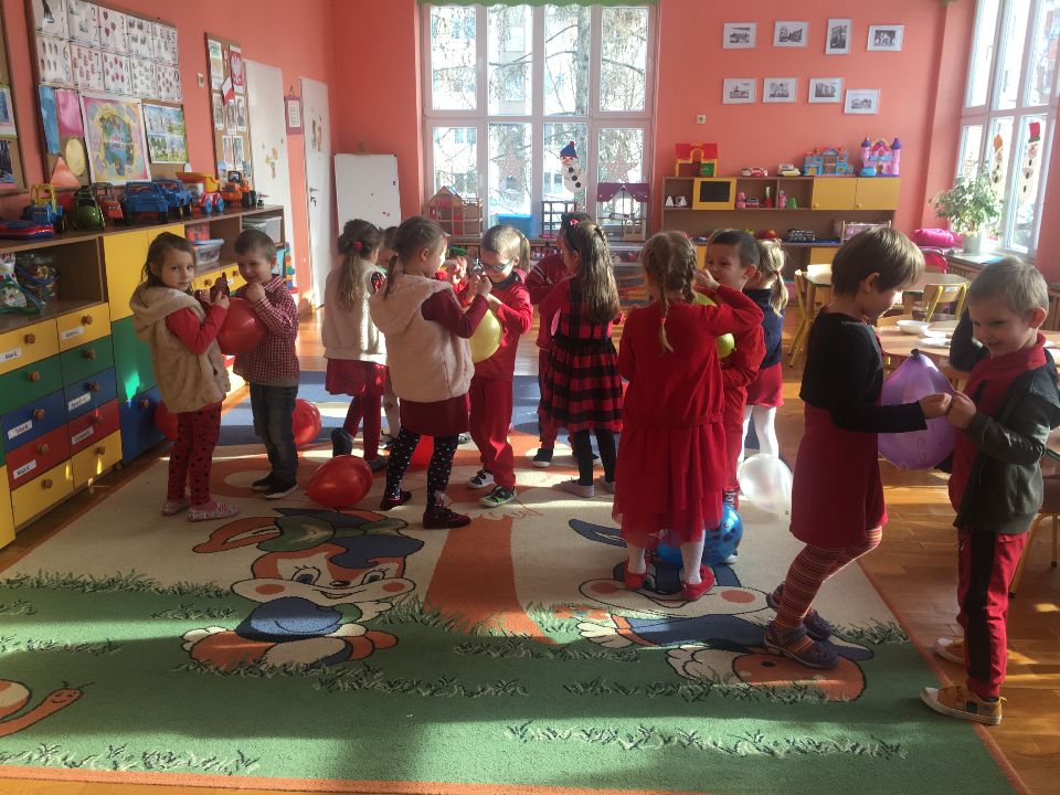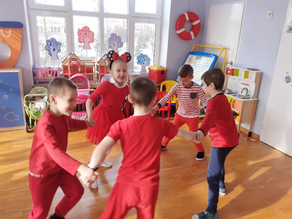 Jak co roku o tej porze, dzieci z całego przedszkola kultywowały tradycje walentynkowe. W pogodnej atmosferze i radosnym nastroju obchodziły ten dzień bardzo przyjemnie. Na początku zostały zaznajomieni ze zwyczajami walentynkowymi, ich historią i tradycją. Poznały również patrona tegoż święta, Świętego Walentego. Przedszkolaki przebrane w czerwone stroje wyklejały, rysowały i kolorowały serduszka, wykonywały laurki i prace plastyczne, by następnie wręczyć je jako walentynkę swoim kolegom, koleżankom oraz rodzicom. Prawiły sobie komplementy i mówiły miłe słowa. Wypowiadały swoje zdania, co według nich znaczy kochać kogoś i jak można to pokazać drugiej osobie. Uczestniczyły w zabawach ruchowych i tanecznych.