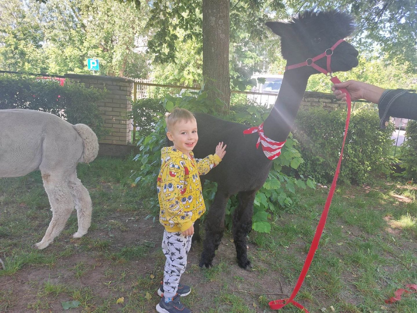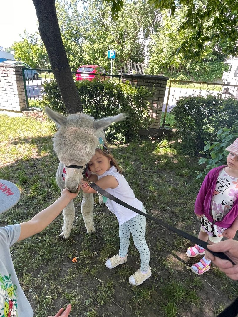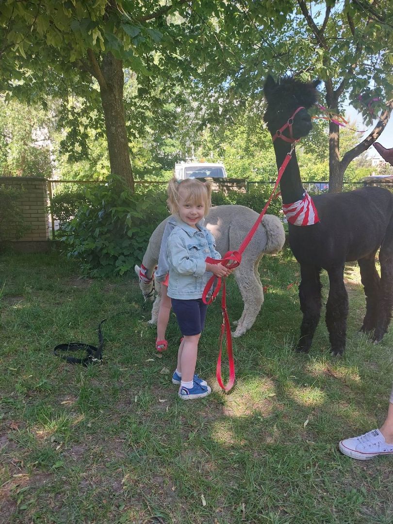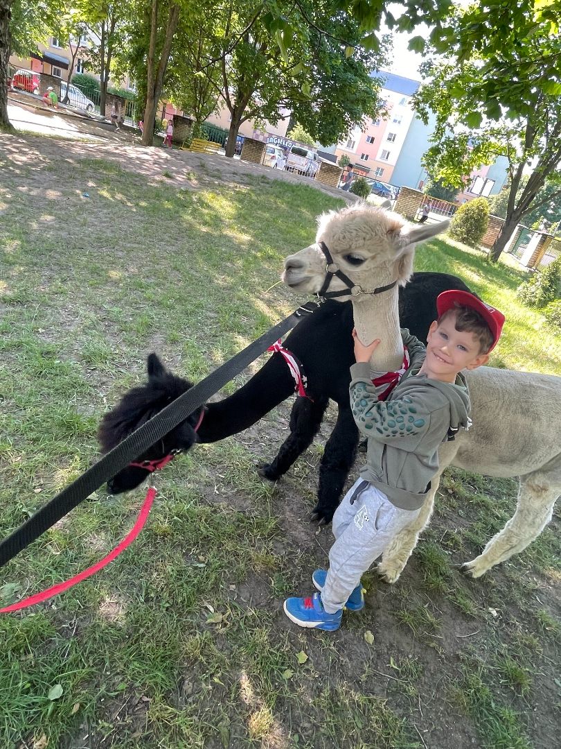 . Alpaki są to zwierzęta o bardzo łagodnym usposobieniu, płochliwe i delikatne, zupełnie pozbawione agresji. Szczególnie pozytywnie nastawienie wykazują w stosunku do dzieci ( dlatego są używane w terapiach dziecięcych). Spotkanie z alpakami było bardzo ciekawą lekcją edukacyjną, podczas której przedszkolaki poznały życie i zwyczaje tych przemiłych zwierząt, dowiedziały się, że alpaki są bardzo inteligentnymi, szybko uczącymi się zwierzętami z rodziny wielbłądowatych, wysłuchały też ciekawostek o alpakach. Każde dziecko miało możliwość nakarmienia uroczego zwierzątka. Wszystkie przedszkolaki były zachwycone ich wizytą
