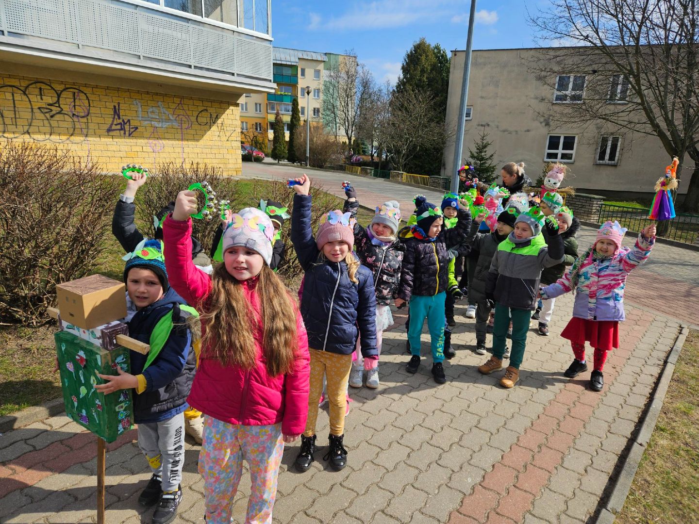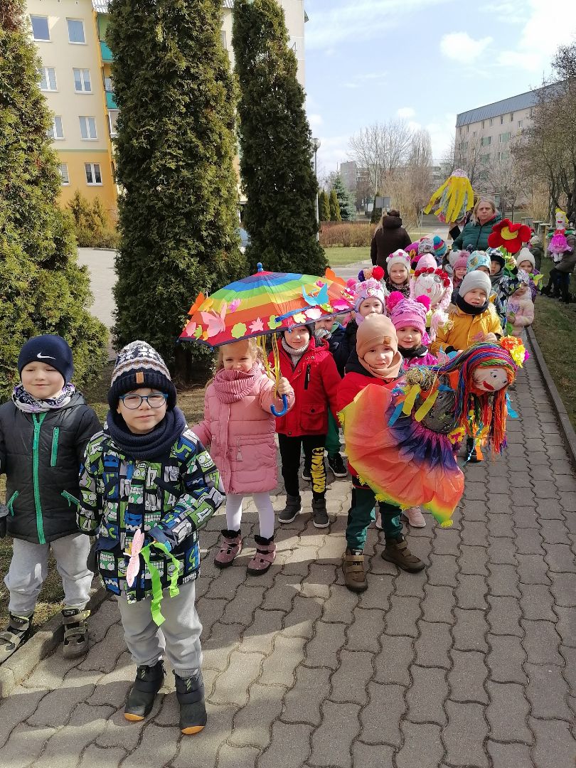 Dzieci w tym dniu wraz z wykonanymi Marzannami wyruszyły w przemarsz w pobliżu przedszkola śpiewając przy tym piosenki. 🎼🎶