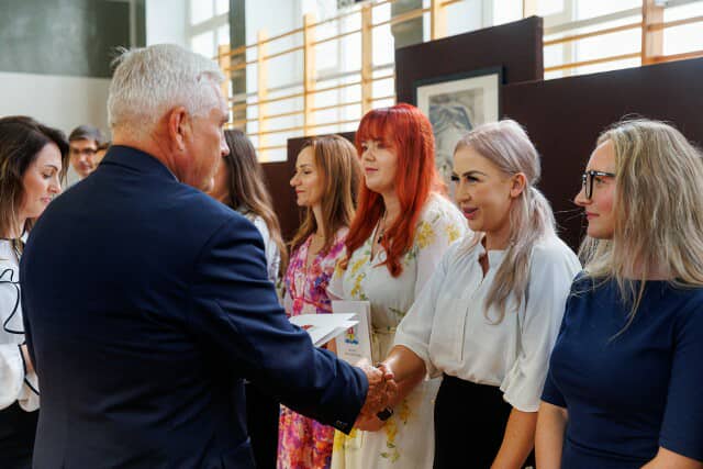 Dziś (4 września) odbyło się uroczyste ślubowanie nauczycieli jednostek oświatowych Miasta Białegostoku oraz wręczenie im aktów mianowania. Z naszego przedszkola stopień nauczyciela mianowanego uzyskały: Pani Paulina Parszenko i Pani Patrycja Stankiewicz. Również Pani Monika Łapińska uzyskała ostatni stopień awansu zawodowego - została nauczycielem dyplomowanym.