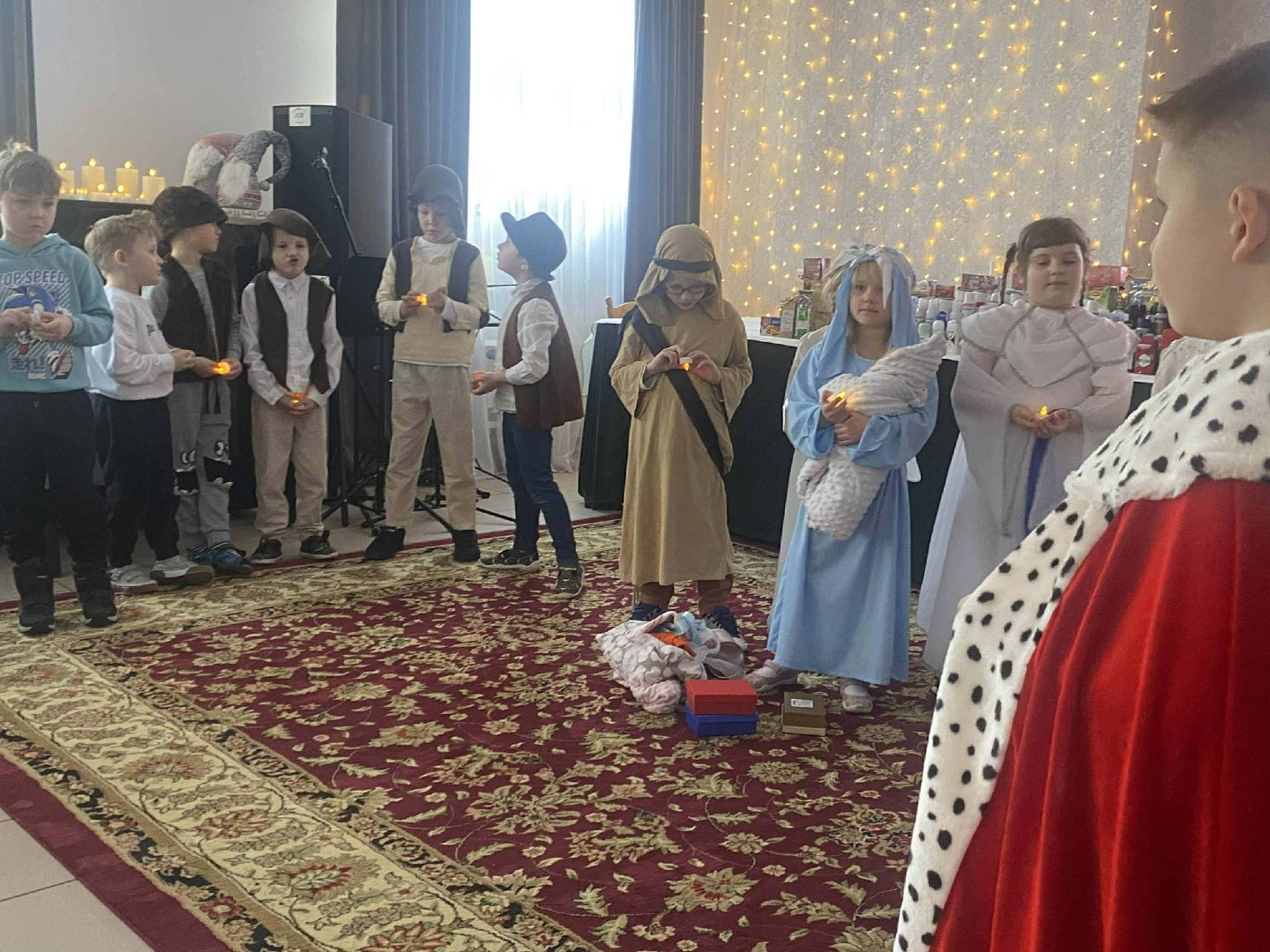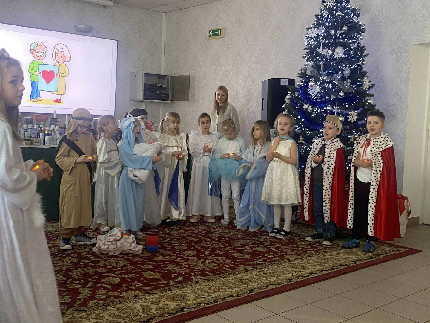 Dzieci z zebranymi herbatami dla seniorów z DPS Występ jasełkowy w DPS Występ jasełkowy w DPS Podziękowanie dla przedszkola Występ jasełkowy w DPS